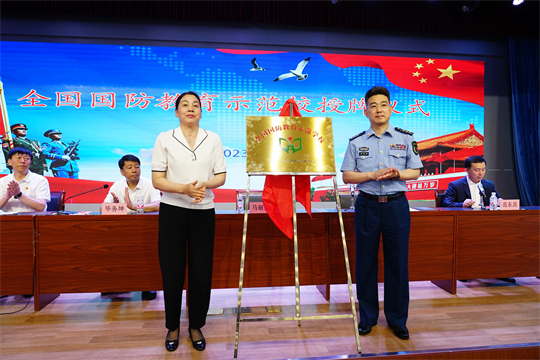 圖為周昆訓(xùn)(生前)參加舒蘭市第一高級(jí)中學(xué)全國(guó)國(guó)防教育示范校授牌儀式。吉林省軍區(qū)政治工作局供圖
