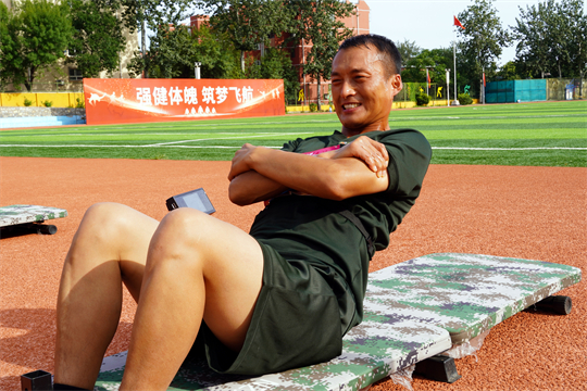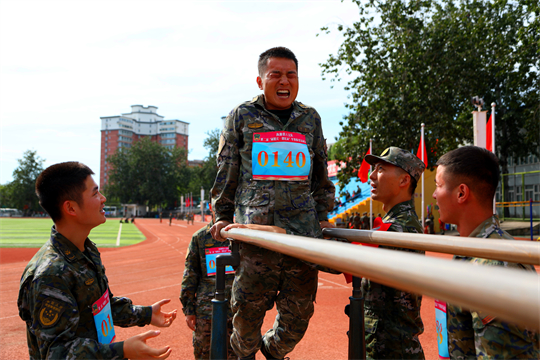 “各就位,預(yù)備,嘭……”伴隨著發(fā)令槍響,4×400米接力賽開始。參賽官兵猶如離弦之箭迅速沖出起跑線,第一棒官兵低頭猛沖,接棒官兵焦急回望,觀賽官兵吶喊助威,現(xiàn)場氛圍緊張熱烈。與此同時(shí),各競賽課目相繼展開,20×60米考驗(yàn)團(tuán)隊(duì)協(xié)作和速度;徒手、負(fù)重組合考驗(yàn)爆發(fā)力和協(xié)調(diào)力;器械課目考驗(yàn)技能技巧和官兵耐力……