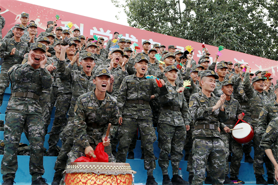 圖為啦啦隊(duì)熱情高漲為參加競賽的官兵加油助威。陳春越 攝