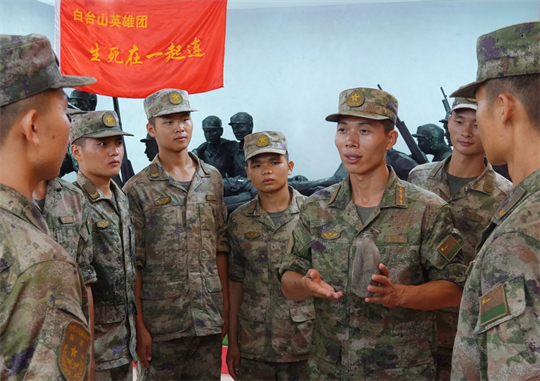 “我們連隊的底色是鮮艷的紅色,有了堅定的思想追隨,有了堅定的理想信念,連隊官兵才能堅定地‘生死在一起’?!倍B連長張培金說。