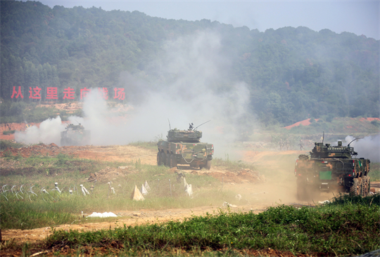 圖為第74集團軍某旅“生死在一起連”開展實兵戰(zhàn)術(shù)演練,連隊?wèi)?zhàn)車占領(lǐng)前沿陣地。
