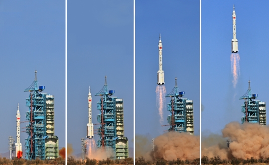 圖為10月26日,搭載神舟十七號載人飛船的長征二號F遙十七運(yùn)載火箭在酒泉衛(wèi)星發(fā)射中心發(fā)射成功。新華社記者 李剛 攝