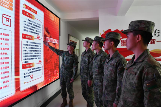 圖為基層官兵收看“國家憲法日”直播。