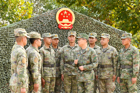 圖為10月25日,合肥軍事法院院長何南杰(右四)與基層官兵分享交流學(xué)習(xí)心得。