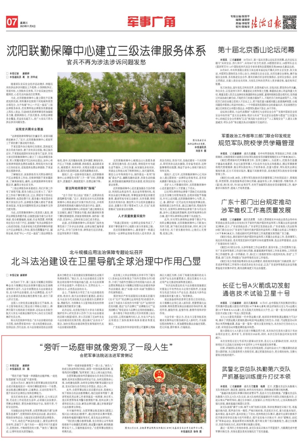 “我們優(yōu)化整合教育資源,充分利用公眾號(hào)等網(wǎng)絡(luò)媒體平臺(tái)展播優(yōu)質(zhì)課程、推送警示案例,做到既教育官兵個(gè)人,又輻射基層單位?!焙戏受娛路ㄔ涸洪L何南杰說。