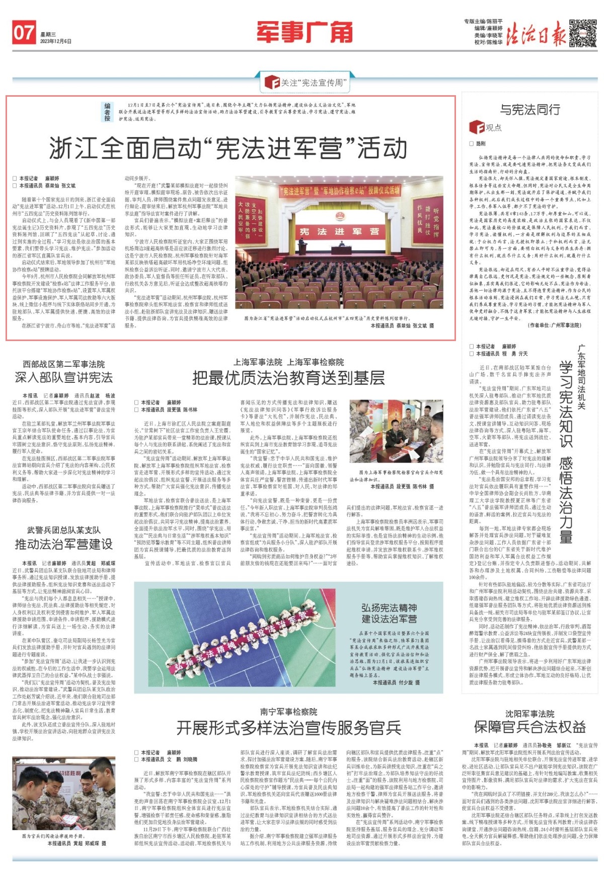 12月1日至7日是第六個“憲法宣傳周”,連日來,圍繞今年主題“大力弘揚(yáng)憲法精神,建設(shè)社會主義法治文化”,軍地聯(lián)合開展送法進(jìn)軍營等形式多樣的法治宣傳活動,助力法治軍營建設(shè),引導(dǎo)教育官兵尊崇憲法、學(xué)習(xí)憲法、遵守憲法、維護(hù)憲法、運(yùn)用憲法。