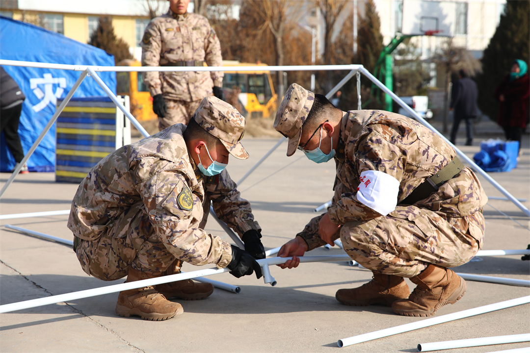 災情發(fā)生后,武警青海總隊依據武警部隊具體部署,迅速啟動應急預案,司令員李在元、政委楊志強組織召開緊急會議,設立基指,安排部署抗震救災工作,派出7人前進指揮組,從西寧出發(fā)驅車奔赴一線組織指揮。