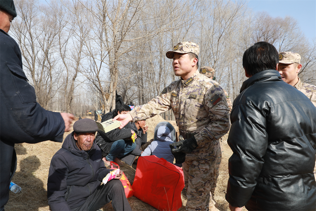 圖為武警青海總隊任務官兵為群眾分發(fā)自熱食品。