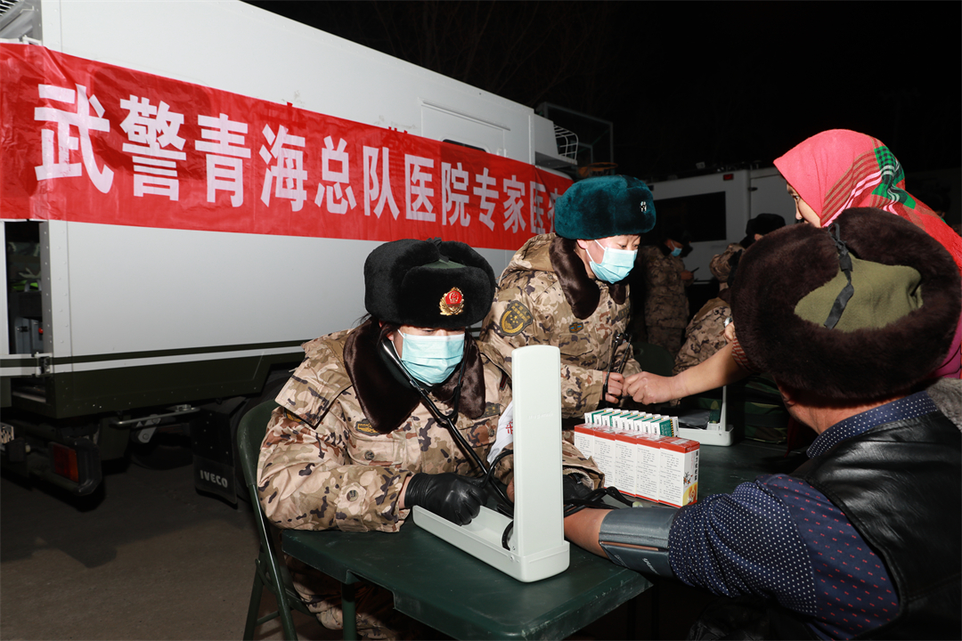 圖為武警青??傟犪t(yī)院軍醫(yī)為受災(zāi)群眾提供醫(yī)療義診服務(wù)。朱曉坷 攝