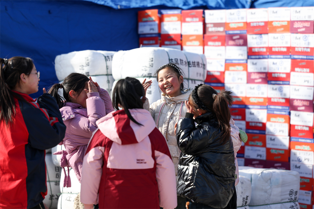 圖為12月21日,在甘肅省臨夏州石山縣劉集鄉(xiāng)陽屲村安置點(diǎn),小朋友們在廣場上開心玩耍。