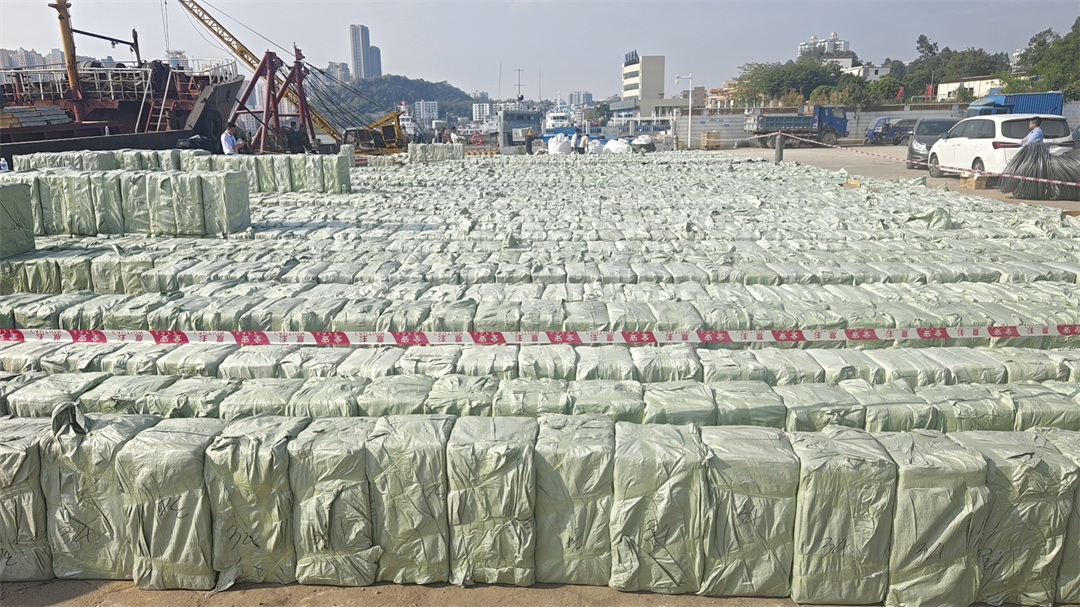 圖為海警執(zhí)法員清點(diǎn)涉案貨物。