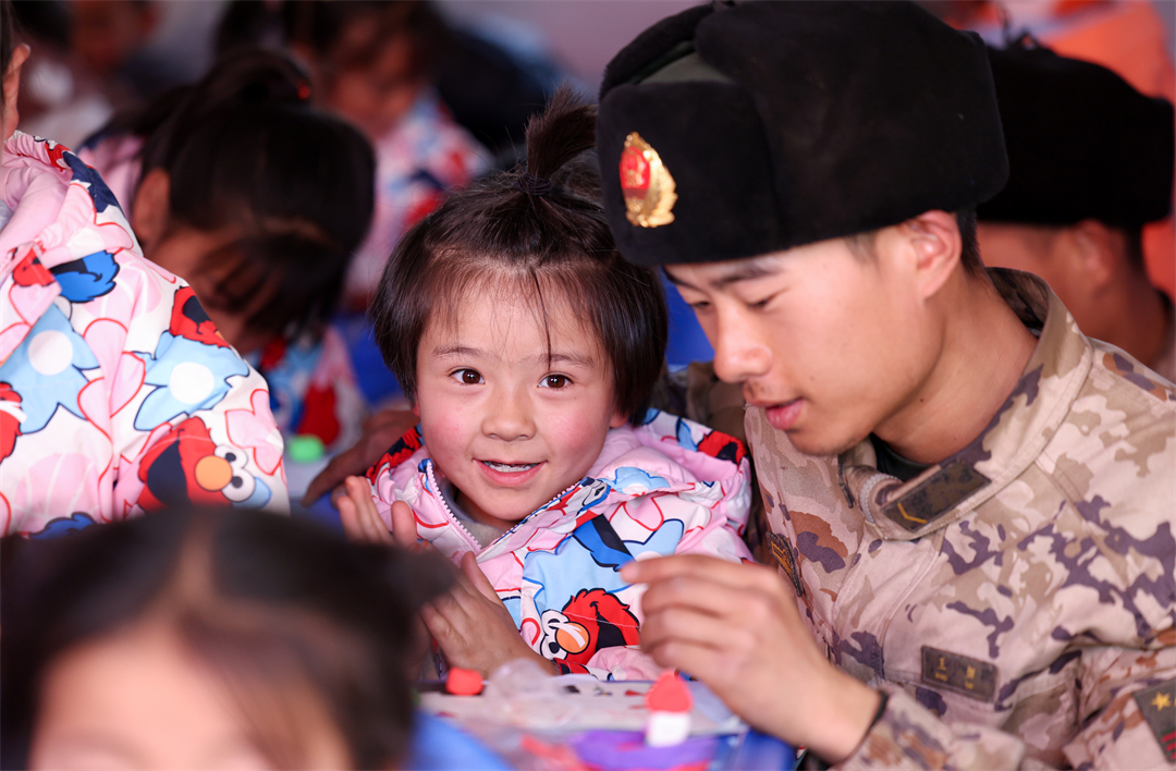 元旦期間,武警甘肅總隊官兵堅守在積石山縣一線,他們完成過渡帳篷拆卸、救災(zāi)物資搬運、協(xié)助受災(zāi)群眾搬入固定板房等任務(wù)后,與駐地群眾一起過節(jié)。武警甘肅總隊臨夏支隊官兵在積石山縣劉集鄉(xiāng)陽屲村,為臨時安置點村民送去燈籠和中國結(jié)。“身為任務(wù)部隊官兵,一定會盡最大努力保障人民群眾生命財產(chǎn)安全,守護人民幸福安寧。”臨夏支隊某中隊小隊長霍星宇說。