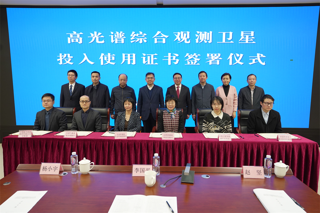 1月23日,國(guó)家航天局在京舉辦高光譜綜合觀測(cè)衛(wèi)星投入使用儀式。國(guó)家航天局總工程師李國(guó)平出席儀式。生態(tài)環(huán)境部、自然資源部、中國(guó)氣象局、中國(guó)航天科技集團(tuán)有限公司等單位代表出席儀式并共同簽署了高光譜綜合觀測(cè)衛(wèi)星投入使用證書(shū)。