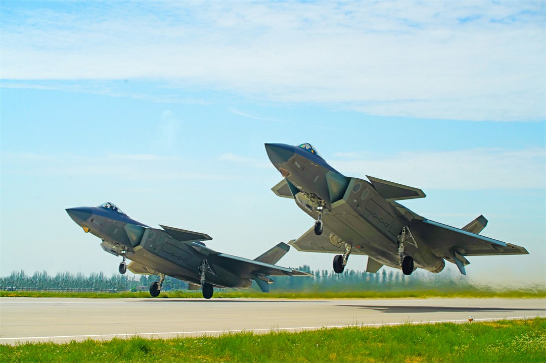 圖為空軍“王海大隊”飛行員駕駛殲-20戰(zhàn)機(jī)編隊起飛。王鴻飛 攝