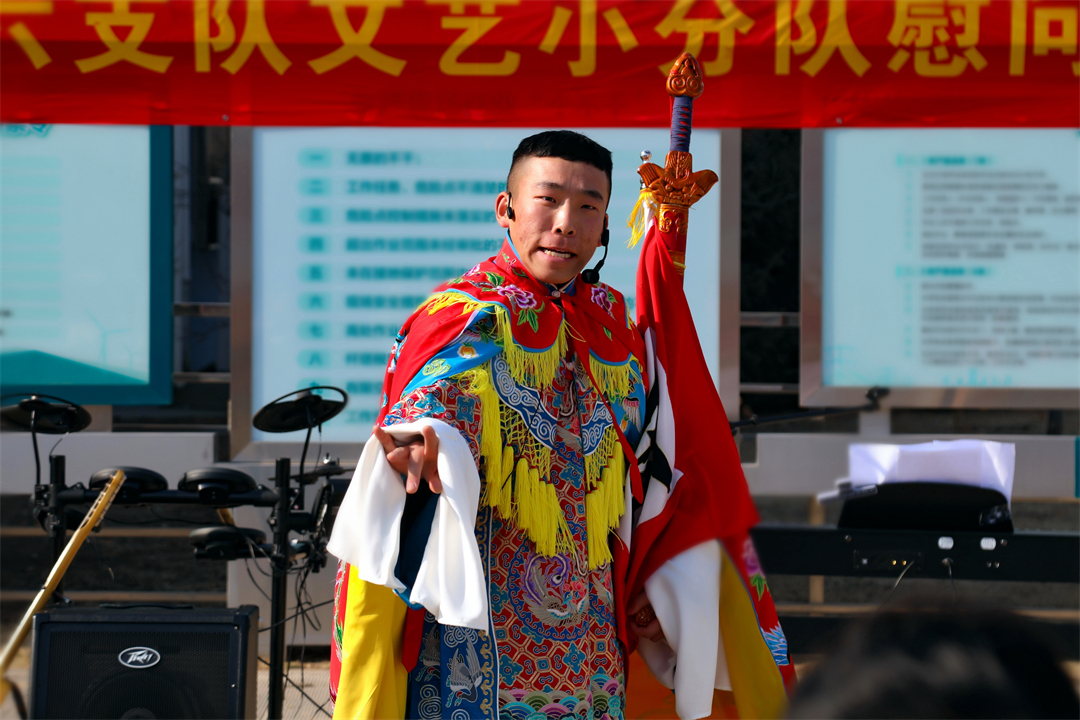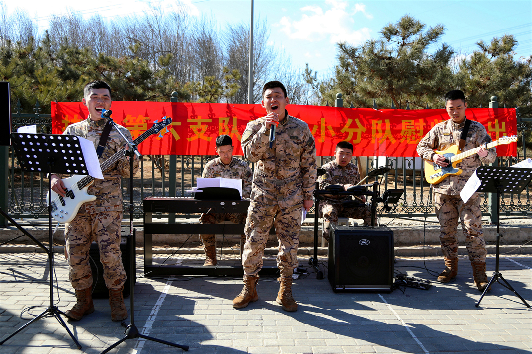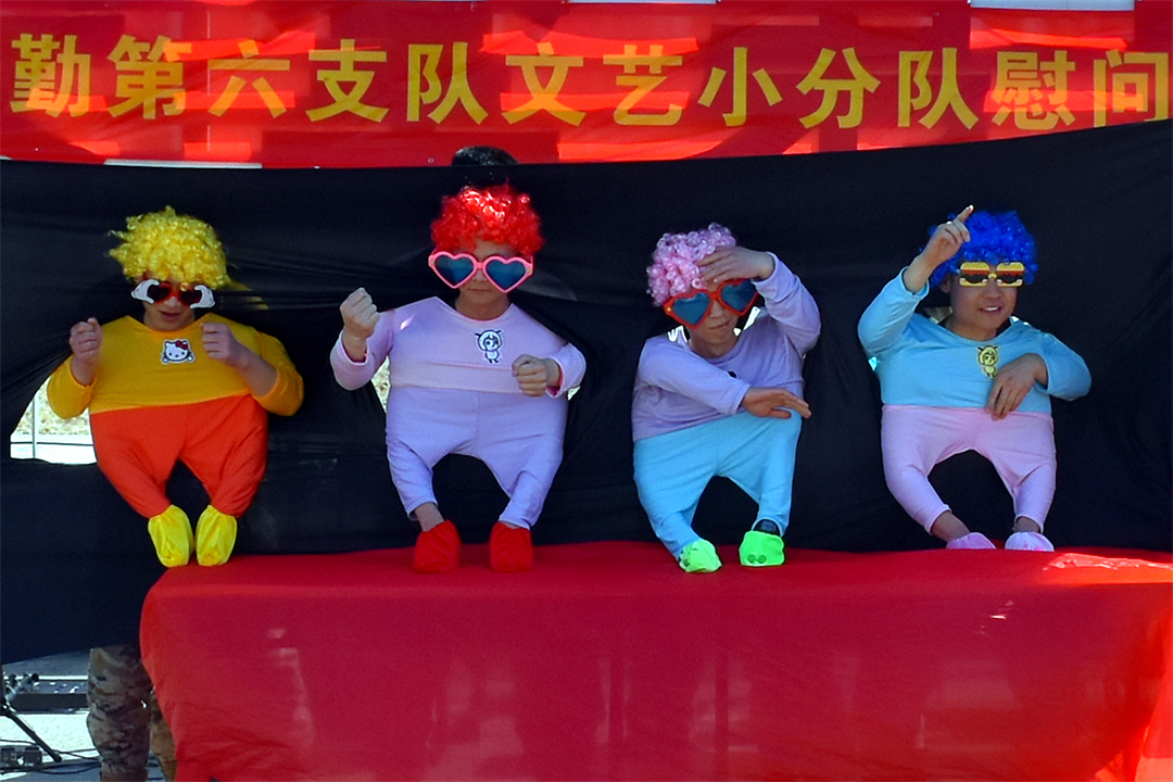 圖為文藝小分隊(duì)來(lái)到任務(wù)一線慰問(wèn)表演。