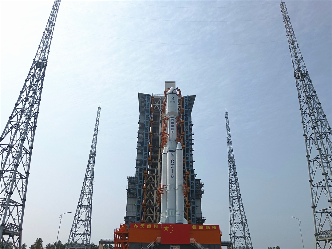 南海之濱,海天之間,高大挺拔的長征八號遙三運載火箭傲然矗立、劍指蒼穹,鵲橋二號中繼星發(fā)射在即。