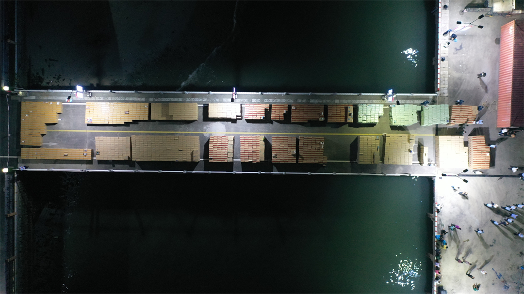 圖為涉案香煙鋪滿整座碼頭。