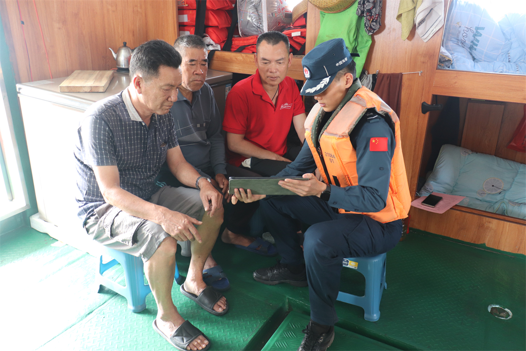 圖為執(zhí)法員向漁船民講解國家安全相關知識。