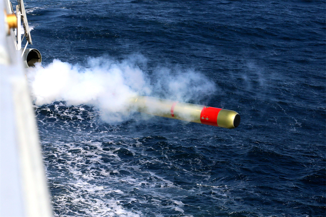 圖為長春艦實射魚雷。林健 攝
