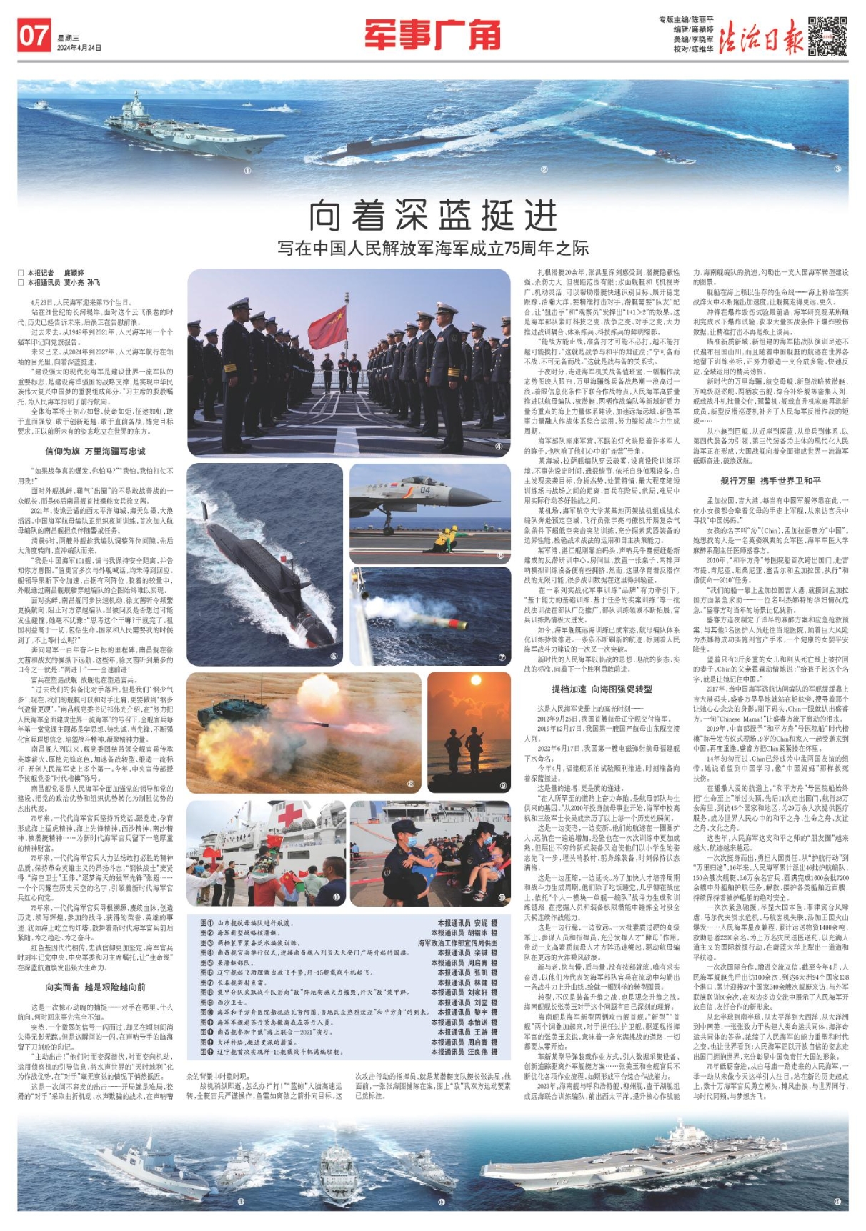 75年砥礪奮進,從白馬廟一路走來的人民海軍,一舉一動從未像今天這樣引人注目。站在新的歷史起點上,數(shù)十萬海軍官兵勇立潮頭、搏風擊浪,與世界同行、與時代同頻、與夢想齊飛。