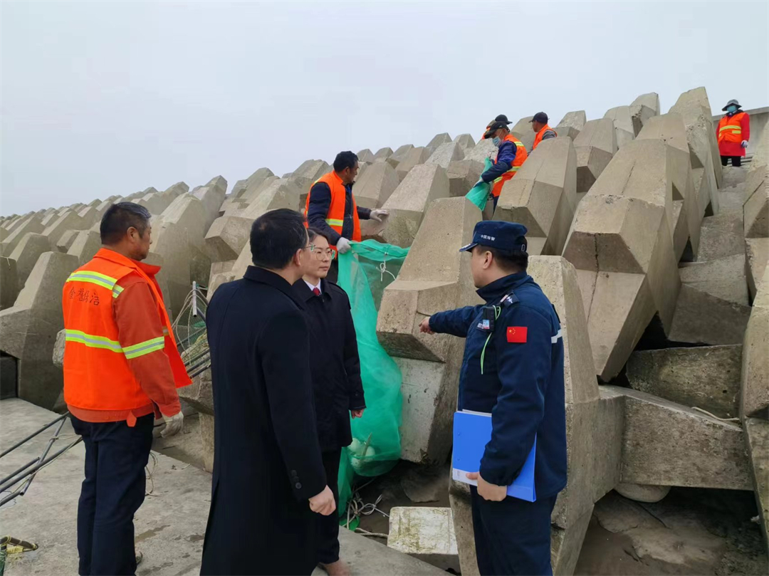 圖為執(zhí)法人員清理藏匿于護(hù)波石間用于捕撈鰻魚(yú)苗的網(wǎng)具。