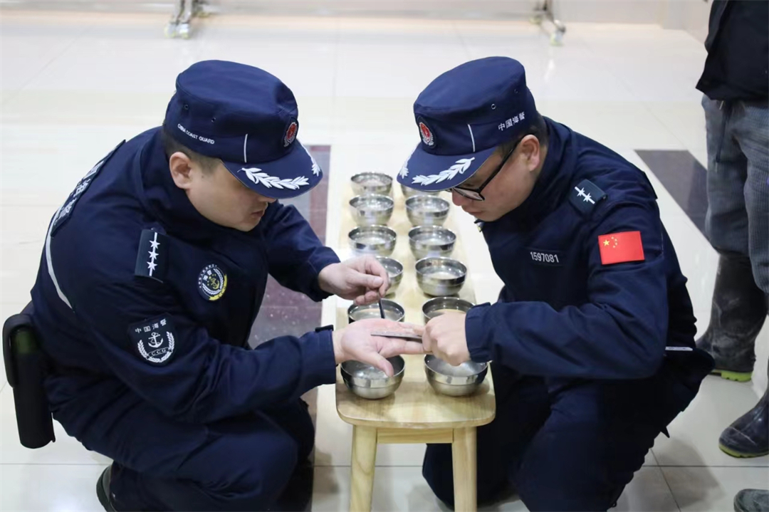 圖為執(zhí)法人員正在對(duì)鰻魚(yú)苗進(jìn)行預(yù)測(cè)量。