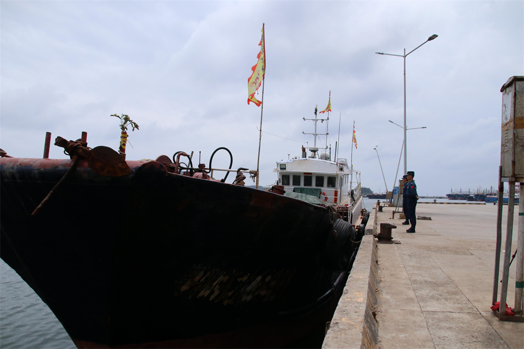5月9日23時許,陽江海警局接報稱,陽江市陽江港附近海域一艘可疑船舶正在靠岸上貨,請海警執(zhí)法員前往處置。該局經研判核實,采取海陸聯(lián)動方式對現(xiàn)場開展攔截控制行動,海警執(zhí)法員分別從陸路及海路火速前往可疑船舶靠岸地點進行查緝。
