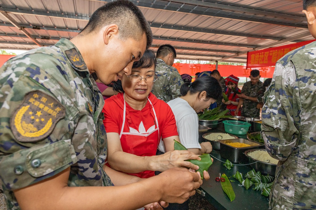 端午佳節(jié)到來之際,武警廣西總隊南寧支隊駐地群眾走進軍營,和官兵們一起包粽子,讓官兵在第二故鄉(xiāng)感受到親情的溫暖。