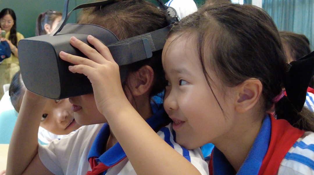 圖為同學們體驗禁毒VR體驗設備。