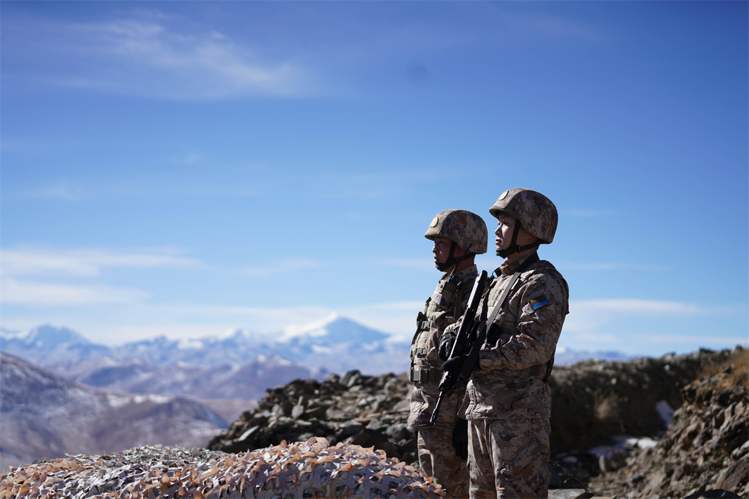 圖為官兵站崗巡邏。朱元強 攝