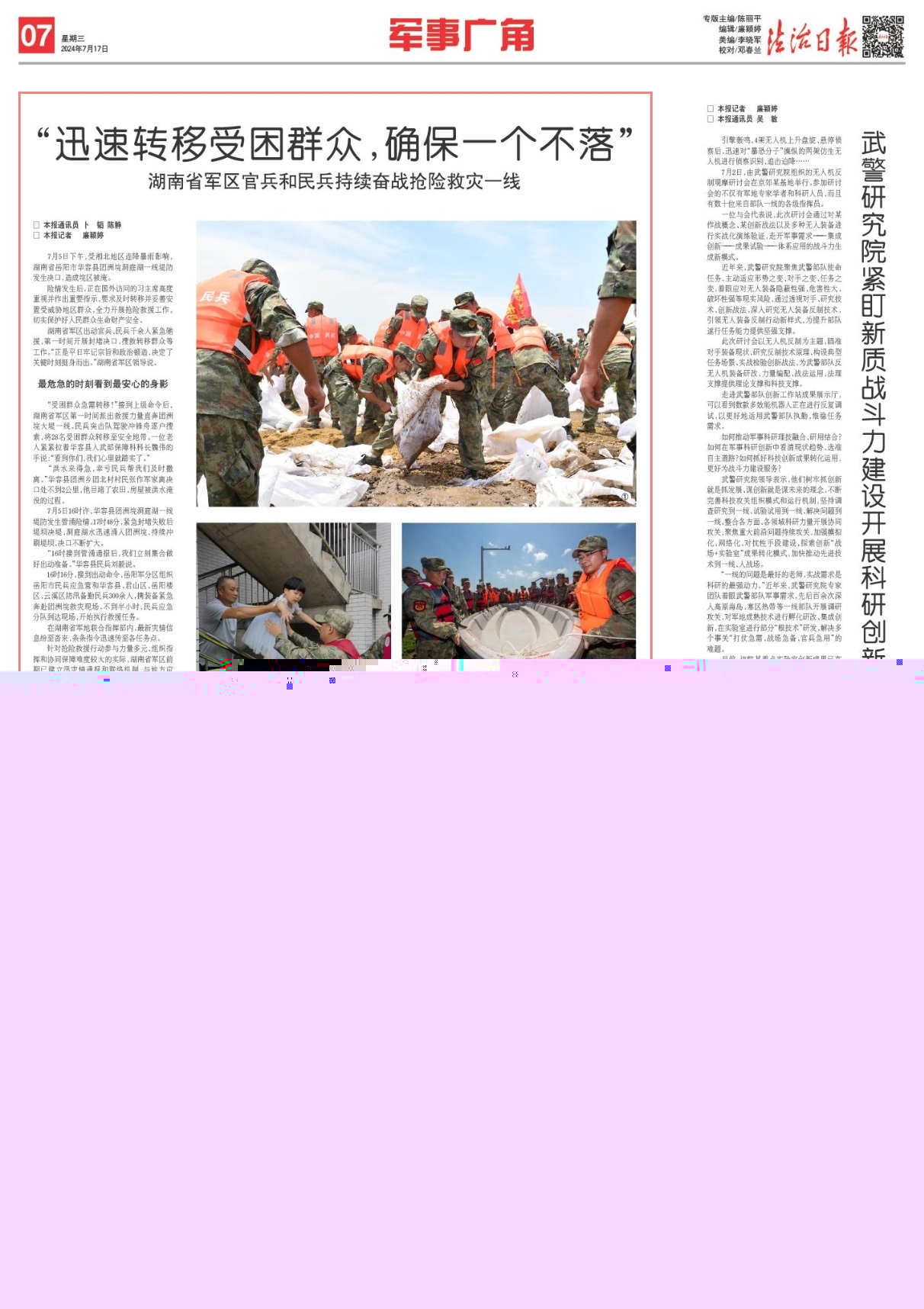 湖南省軍區(qū)出動官兵、民兵千余人緊急馳援,第一時間開展封堵決口、搜救轉(zhuǎn)移群眾等工作。“正是平日牢記宗旨和政治鍛造,決定了關(guān)鍵時刻挺身而出?!焙鲜≤妳^(qū)領(lǐng)導(dǎo)說。