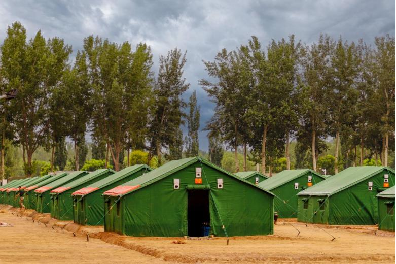 抵達(dá)駐訓(xùn)場后,各單位迅速展開物資卸載、土地平整、通水通電、帳篷搭建等工作。