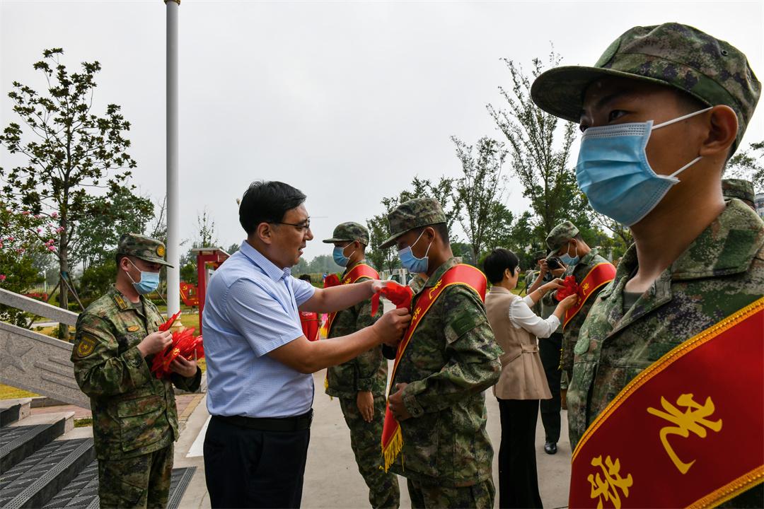 圖為臨沭縣領(lǐng)導(dǎo)為預(yù)定新兵佩戴光榮花。