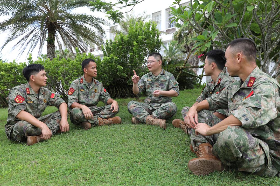 根據(jù)上級(jí)要求,單位組建新的民兵分隊(duì)。面對(duì)新任務(wù)、新裝備,在缺教材、缺經(jīng)驗(yàn)的情況下,如何快速形成戰(zhàn)斗力?高海超主動(dòng)請(qǐng)纓,一邊聯(lián)系廠家、科研院校和友鄰單位,了解裝備性能和基本操作程序,一邊研究成建制民兵訓(xùn)練方法。高溫下的島礁酷暑難耐,高海超帶領(lǐng)民兵泡在訓(xùn)練場(chǎng),住在裝備倉(cāng)庫(kù),一待就是1個(gè)月。