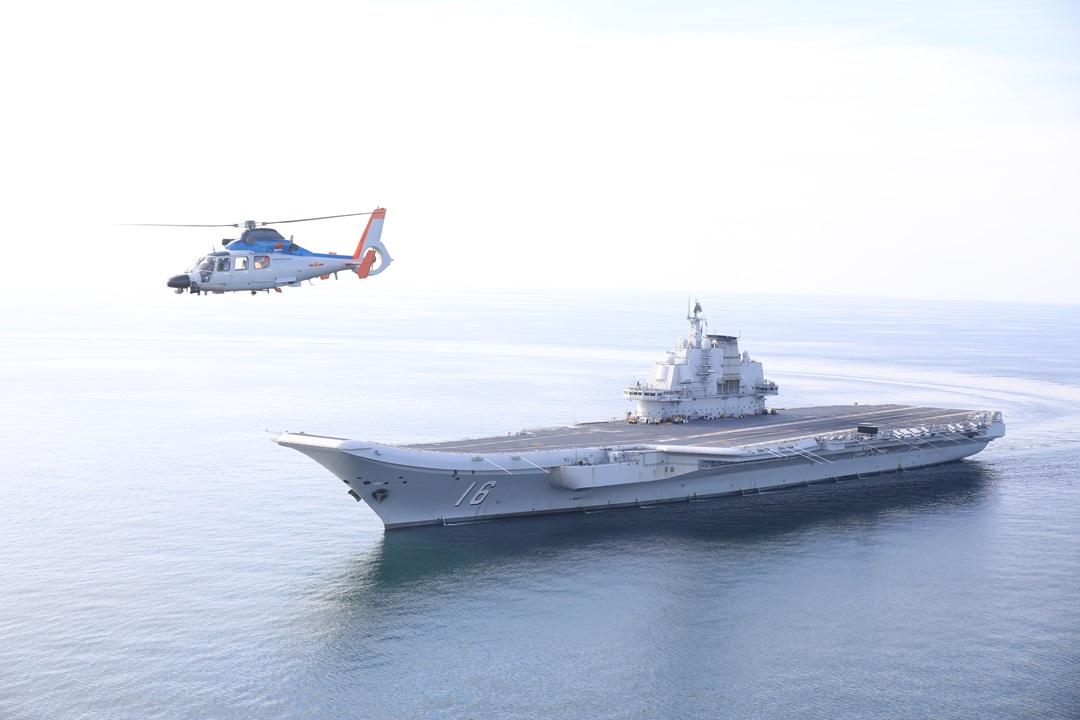 夏夜,遼寧艦正破浪前行,浪涌拍打著艦舷發(fā)出低沉而有力的怒吼。不遠(yuǎn)處,一架搜救直升機(jī)正隱藏在海天的黑幕中。