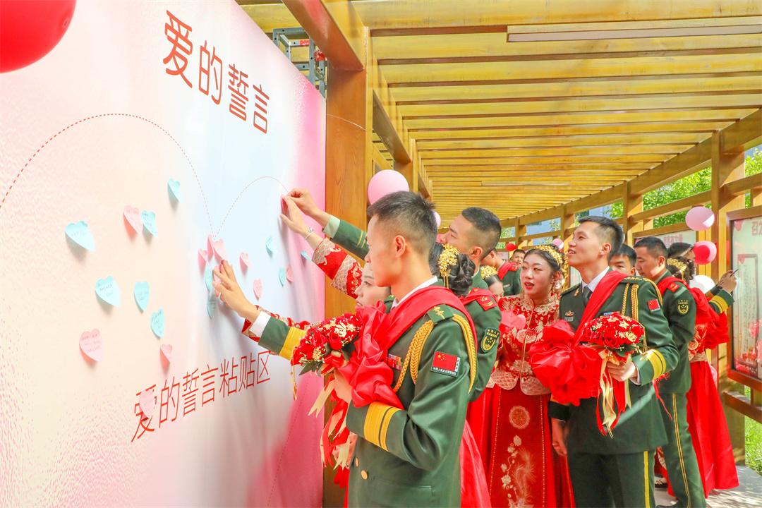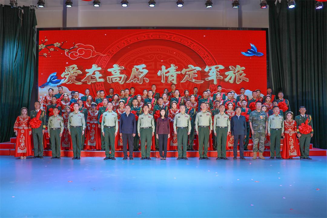圖為軍地領(lǐng)導(dǎo)和參加集體婚禮的新人合影留念。楊浩 攝