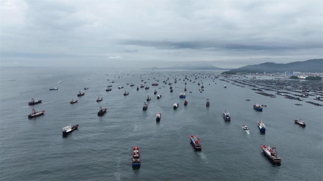 圖為8月16日,廣東陽江舉辦第二十二屆南海(陽江)開漁季活動(dòng),在海警艦艇護(hù)航下漁船爭相駛出港口。