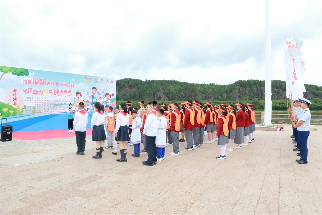 8月16日上午,“紅領(lǐng)巾愛祖國——我心中的五星紅旗”國旗傳遞活動黑龍江省漠河站,在漠河市北極鎮(zhèn)中心小學(xué)舉行。來自全省各地的少先隊員代表、輔導(dǎo)員代表、漠河市黨政軍警民代表、西部計劃志愿者共計100余人參加活動。