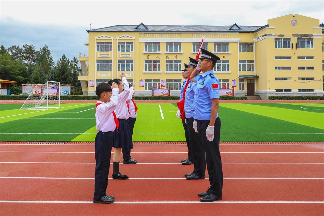 在國旗下,漠河市邊境檢查站干警陳澤講述了他在零下53℃極寒天氣下開展保境安民的感人故事,漠河市洛古河村駐村第一書記王成龍分享了他在黑龍江省源頭村落帶領(lǐng)百姓衛(wèi)國戍邊的駐村工作經(jīng)歷,為在場的每位少先隊員上了一堂生動的國防教育課,漠河市少先隊員代表王涵用稚嫩而堅定的聲音代表廣大少先隊員表達(dá)了對祖國的熱愛和對戍邊工作者的崇敬之情。團(tuán)省委副書記陳海萍在講話中鼓勵少先隊員要學(xué)習(xí)漠河戍邊工作者堅韌不拔和無私奉獻(xiàn)的精神,要立足祖國最北方志存高遠(yuǎn)、勤奮學(xué)習(xí)、錘煉品德、強(qiáng)健體魄,敢于創(chuàng)新、富于創(chuàng)意、樂于創(chuàng)造,要沿著“入隊、入團(tuán)、入黨”的“人生三部曲”奮力前進(jìn),為推進(jìn)中國式現(xiàn)代化、實現(xiàn)強(qiáng)國復(fù)興偉業(yè)貢獻(xiàn)青春力量。