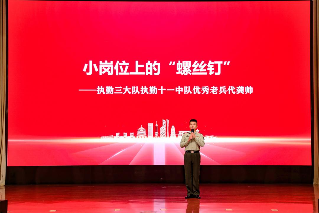 9月9日下午,武警北京總隊執(zhí)勤第六支隊舉辦“忠誠衛(wèi)士永向黨”感動軍營優(yōu)秀老兵頒獎典禮,通過事跡宣講與文藝匯演相結合的方式,深情講述優(yōu)秀退伍老兵不忘初心、砥礪奮進的感人事跡,傳承弘揚退伍老兵愛崗敬業(yè)、無私奉獻的精神財富,以高昂激越的主旋律引領全體官兵忠實履行使命、奮進強軍征程。