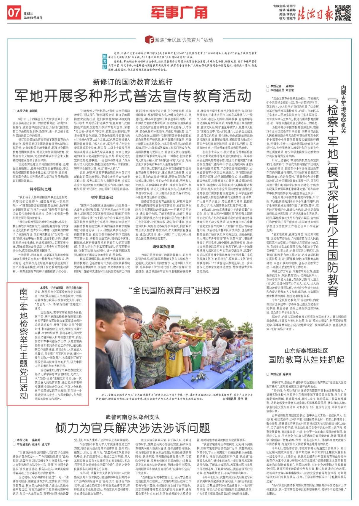 近日,解放軍南寧軍事檢察院黨支部聯(lián)合廣西壯族自治區(qū)人民檢察院南寧鐵路運(yùn)輸檢察分院第五檢察部黨支部,舉行“勿忘九一八 吾輩當(dāng)自強(qiáng)”主題黨日活動(dòng)。