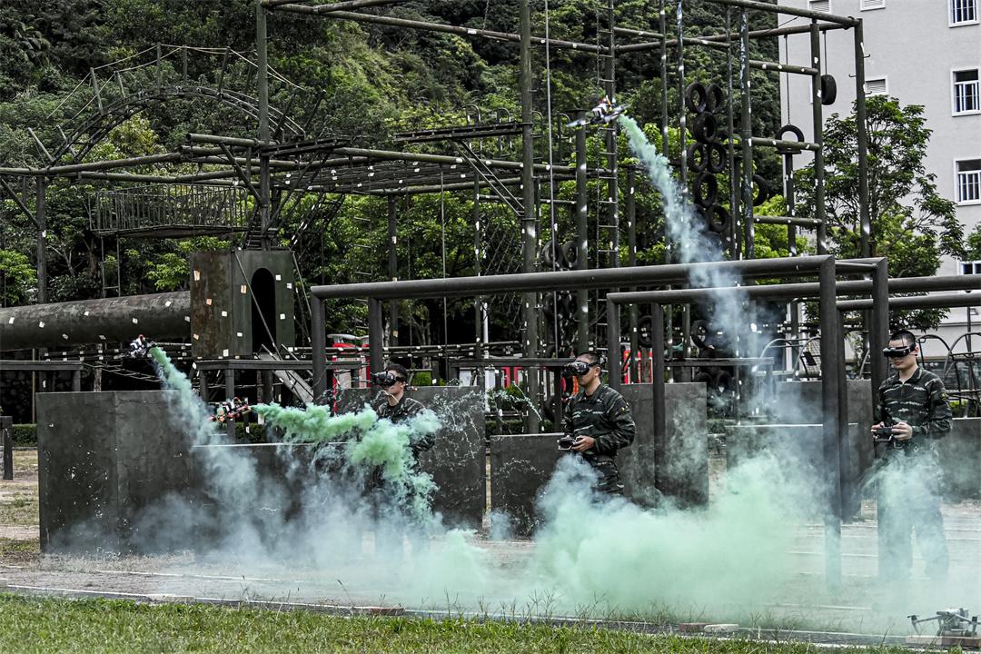 圖為官兵進(jìn)行無人機課目演示。