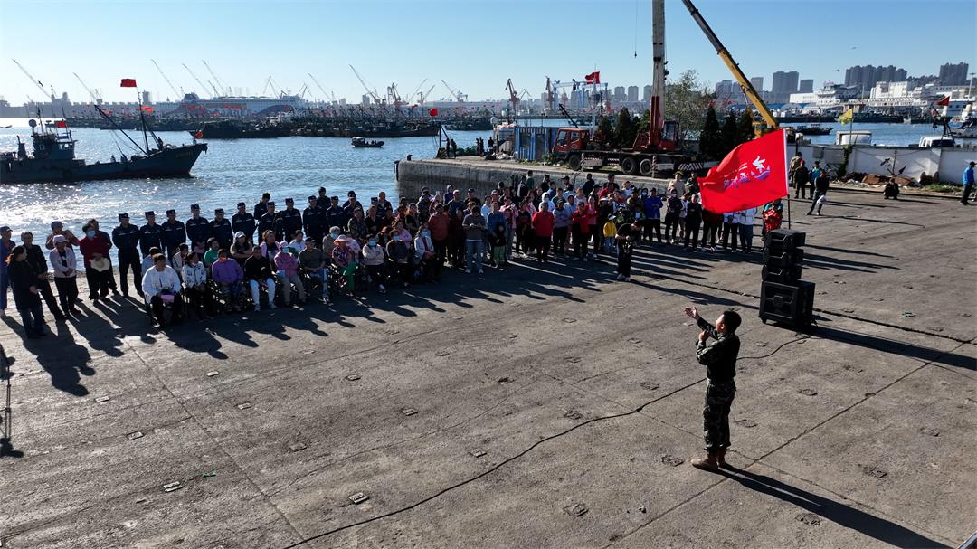 在大連遼漁碼頭演出時(shí),當(dāng)天海風(fēng)凜冽,氣溫驟降,但絲毫沒有減弱漁民朋友的熱情與期待。由于觀眾較多,座位遠(yuǎn)遠(yuǎn)不夠,許多漁民朋友索性站著,甚至攀上漁船、車頂。這時(shí),隊(duì)員陸敏志腰傷突發(fā)鉆心地疼。大連海警局宣傳干事建議他休息,陸智卻說,如果今天不能展示最好的表演狀態(tài),那就對(duì)不起臺(tái)下駐地執(zhí)法員和漁民朋友的熱情與期待。就這樣,他和隊(duì)員們與觀眾進(jìn)行了一場(chǎng)溫暖的雙向奔赴。