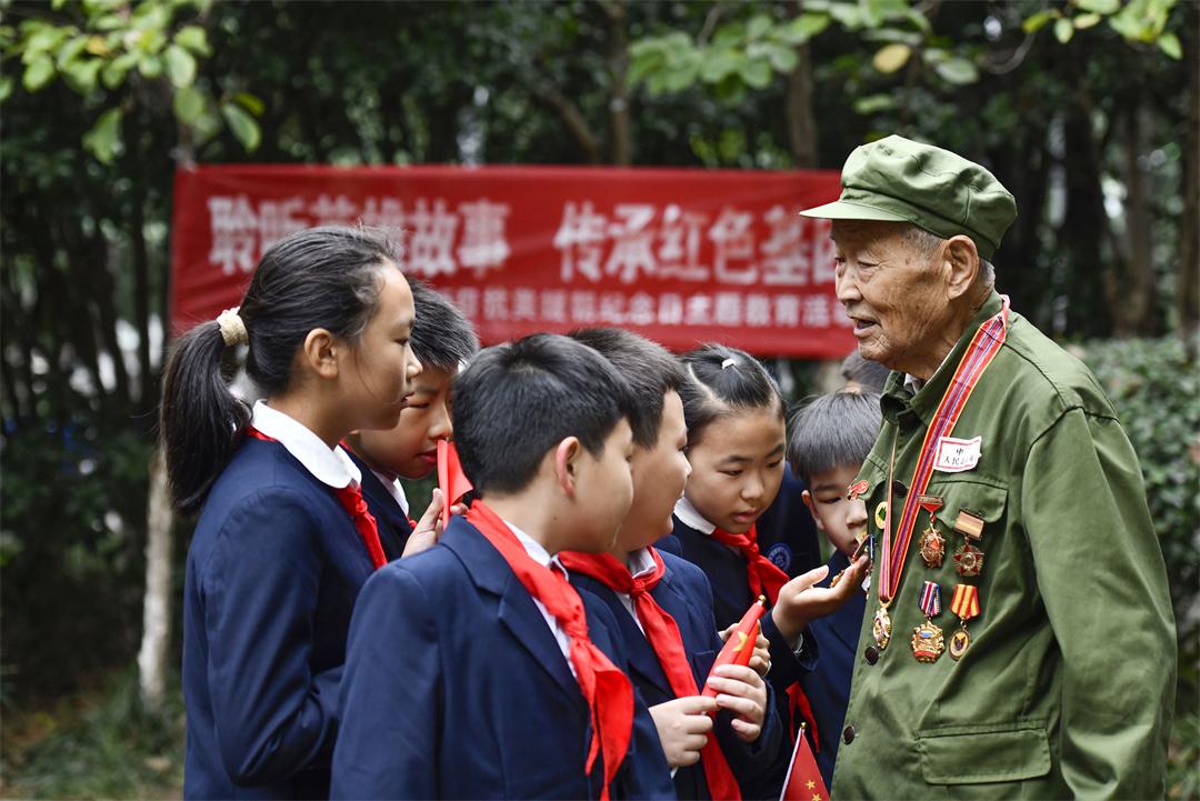 圖為89歲抗美援朝老兵楊克美給孩子們講述英雄故事。