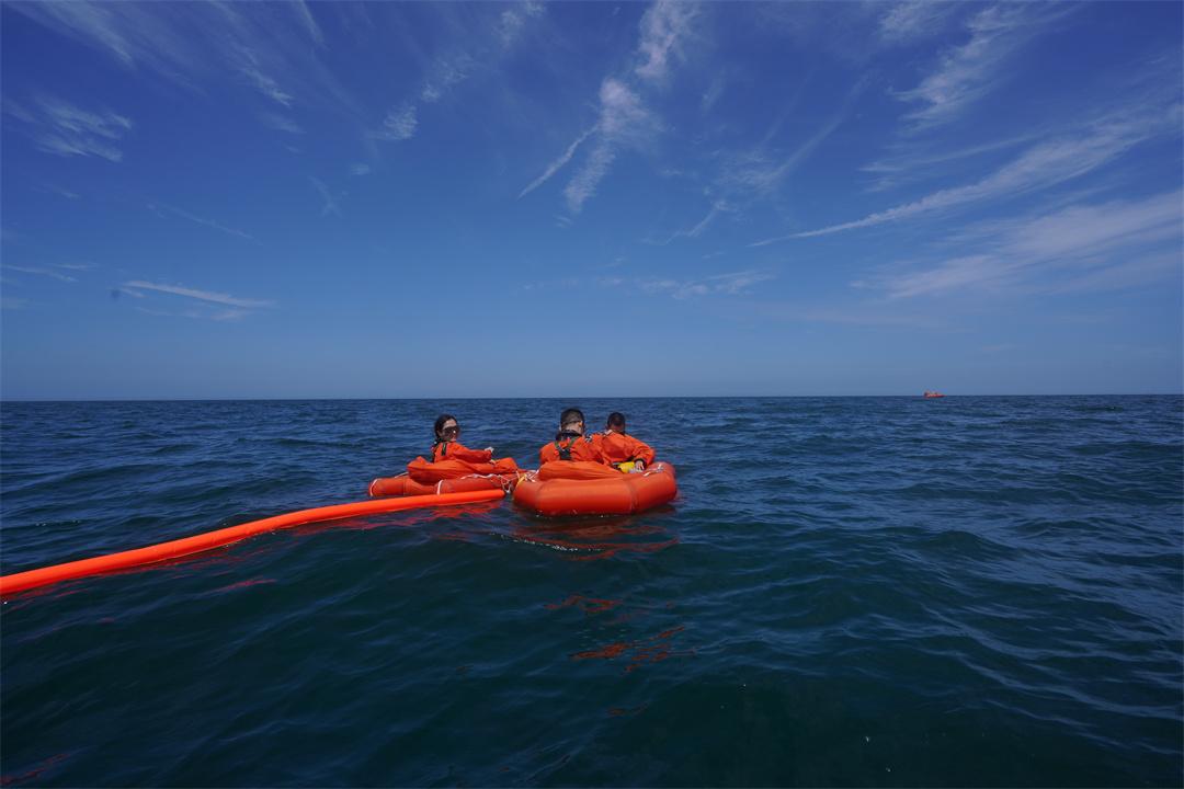 圖為王浩澤(左)參加海上救生訓(xùn)練??追街?攝