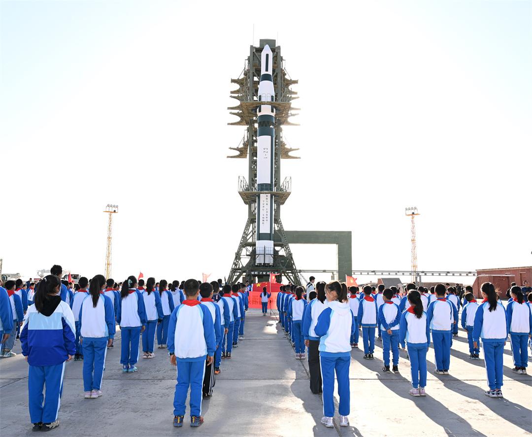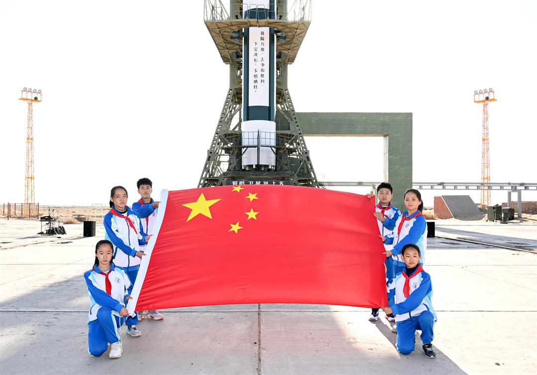 隨后,少先隊(duì)員們帶著國(guó)旗前往載人航天發(fā)射場(chǎng)。神舟十九號(hào)載人飛船發(fā)射任務(wù)0號(hào)指揮員趙磊為少先隊(duì)員們介紹了這座我國(guó)目前唯一的載人航天發(fā)射塔架。就在前幾天,神舟十九號(hào)航天員乘組從這里飛向中國(guó)空間站。截至目前,這里發(fā)射了19艘神舟飛船,將24名38人次航天員送入太空。這面滿載榮譽(yù)的國(guó)旗正是從這個(gè)塔架上隨航天員一同進(jìn)入中國(guó)空間站。