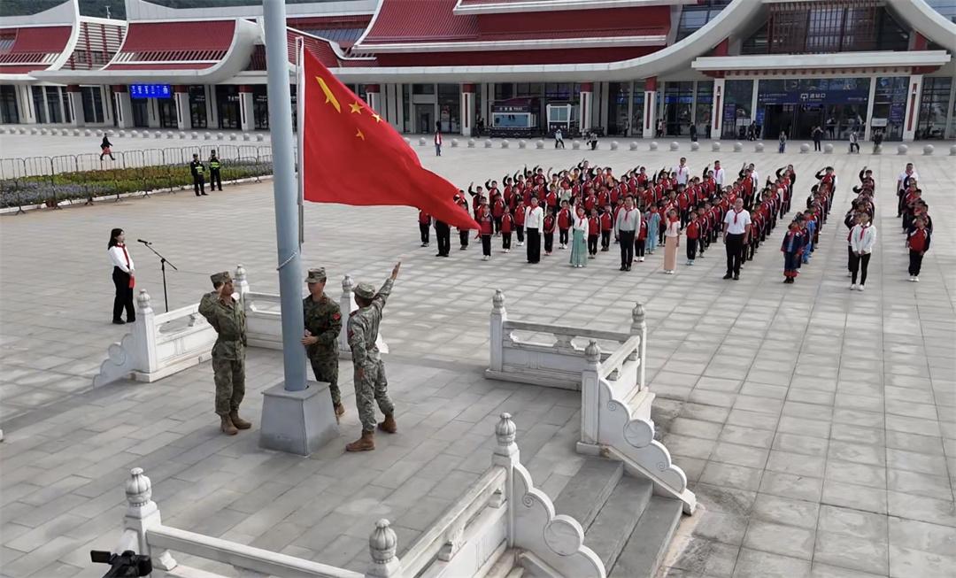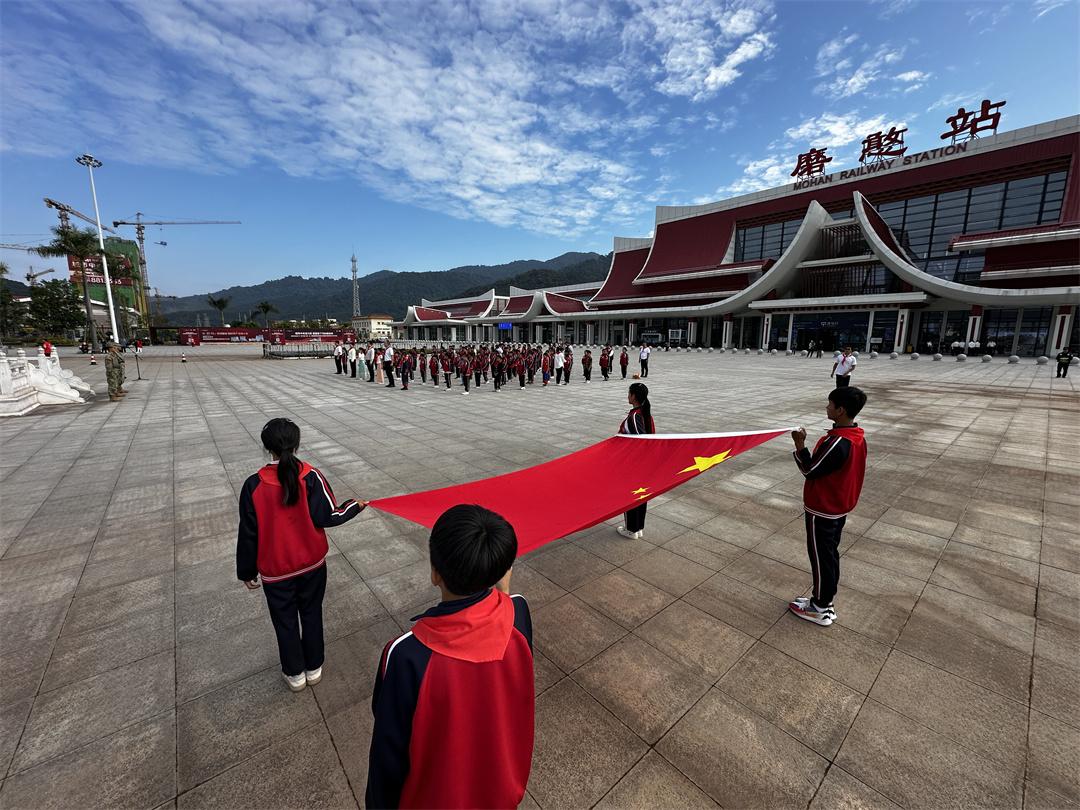 11月12日,“紅領(lǐng)巾愛祖國(guó)——我心中的五星紅旗”國(guó)旗傳遞活動(dòng),在中老鐵路磨憨站舉行。