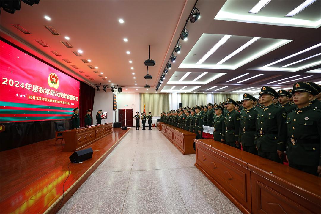 黝黑的皮膚、堅(jiān)毅的眼神、筆直的身軀,百余名新兵整齊列隊(duì)迎來軍旅生涯成人禮。11月28日,武警北京總隊(duì)執(zhí)勤第六支隊(duì)舉行2024年度秋季新兵授銜宣誓儀式。