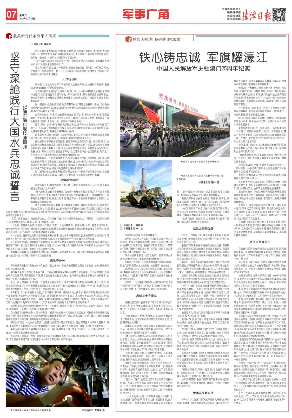 25年風(fēng)雨鑄忠誠(chéng),25年軍旗耀濠江。