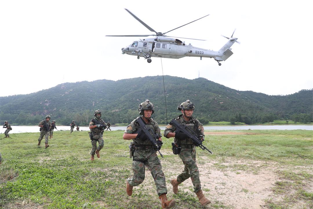 圖為駐澳門(mén)部隊(duì)組織機(jī)降訓(xùn)練。